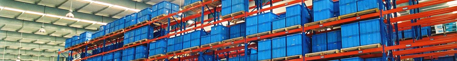 重型貨架通常貨物通過托盤、倉儲(chǔ)籠等單元集裝設(shè)備整裝后存入貨架保管。重型貨架每單元載重一般在4000kg以內(nèi),每層通常放兩個(gè)單元。