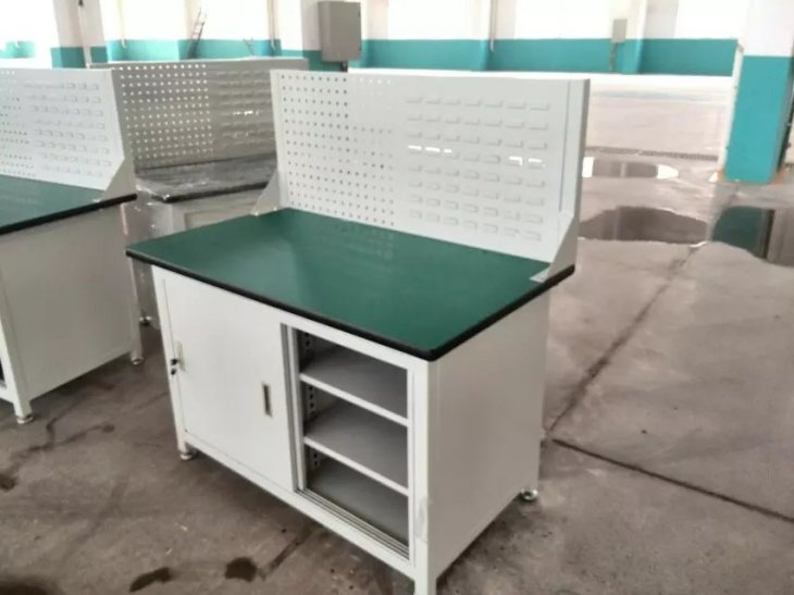 工作臺采用優(yōu)質(zhì)冷扎板精工制作而成,堅固的工作桌框架,牢固平穩(wěn),可使工作桌承重1000kg;多種工作桌面選擇,可配合不同使用的要求;工具吊柜(箱),側(cè)柜(箱)燈架,調(diào)節(jié)腳杯,,外形美觀;層板,抽屜質(zhì)量上乘,承重大,抽屜內(nèi)可根據(jù)需要任意分隔;節(jié)約空間,適用性強(qiáng)。