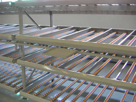 1、采用滾輪式鋁合金等流力條,利用貨物自重實(shí)現(xiàn)貨的先進(jìn)先出。